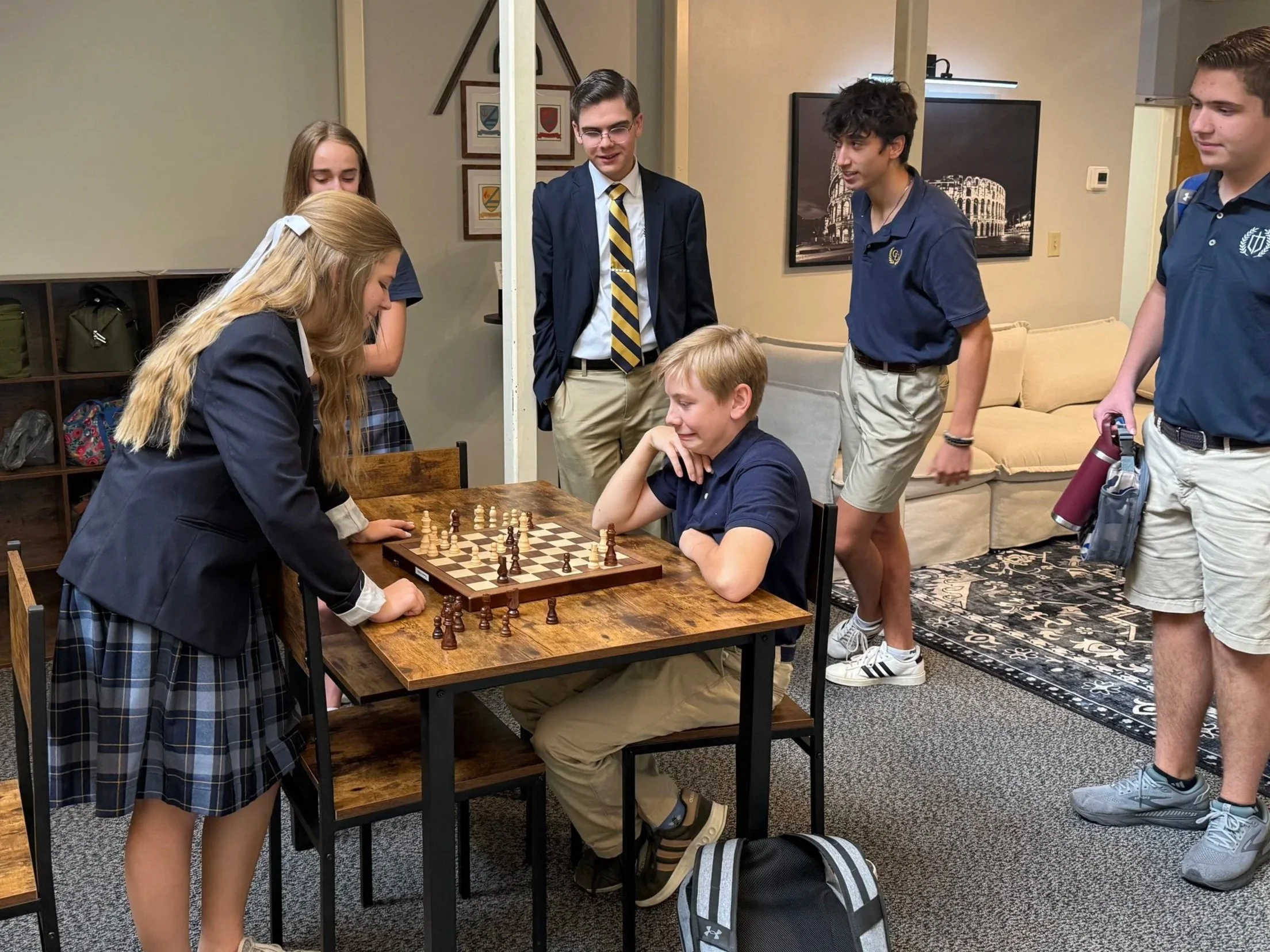 The chess club at Coram Deo offers students a quiet yet invigorating space to engage with “the Game of Kings.” During down times throughout the day, students gather around boards to test their skills, sharpen their focus, and enjoy friendly competition. More than a pastime, chess becomes a training ground for patience, foresight, and virtuous decision-making. In each match, students learn to think deeply, act deliberately, and appreciate the beauty of ordered thought, all within a community that values both play and purpose.